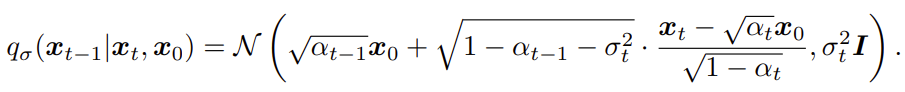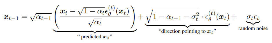 DDIM에서는 x_t에서 아래와 같은 식으로 x_t-1을 샘플링한다.