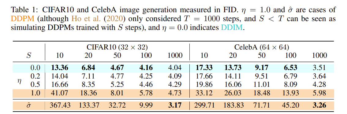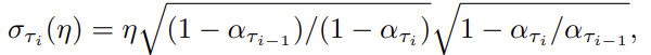 이때 앞에 붙는 eta는 직접 조절 가능한 하이퍼파라미터로, eta=0일 때 DDPM과 완전히 같아진다. 또한 eta=0일 때 DDIM이 된다.