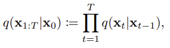 우변에 있는 두 식 q(x_T | x_0)과 q(x_t-1 | x_t, x_o)은 아래와 같은 분포를 따르도록 정의된다.
