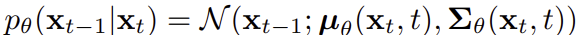ModelVarType은 모델의 output variance를 어떤 것으로 사용할지 나타낸다. Learned variance는 DDPM이 "이론적으로" 적용되었을 때를 말하며, 아래 식의 sigma theta이다.