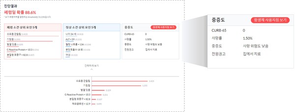 HIS는 EMR, PACS, 의료 AI, 빅데이터를 통합한 의료정보시스템을 말하는데, 이지케어텍 또한 이러한 고도화된 통합 솔루션 제공을 위해 다양한 의료 AI 소프트웨어 회사들과 협력하거나 인공지능을 자체 개발하고 있다. ezAssistant Pneumonia 라는 모델은 EMR, CDW의 tabular data를 이용하여 폐렴 확률을 진단하는 소프트웨어다. 머신러닝(XGBoost) 알고리즘을 이용하기에 약 1300개의 적은 데이터셋을 학습하였지만, 9할 이상의 높은 진단 정확도를 보인다고 한다.