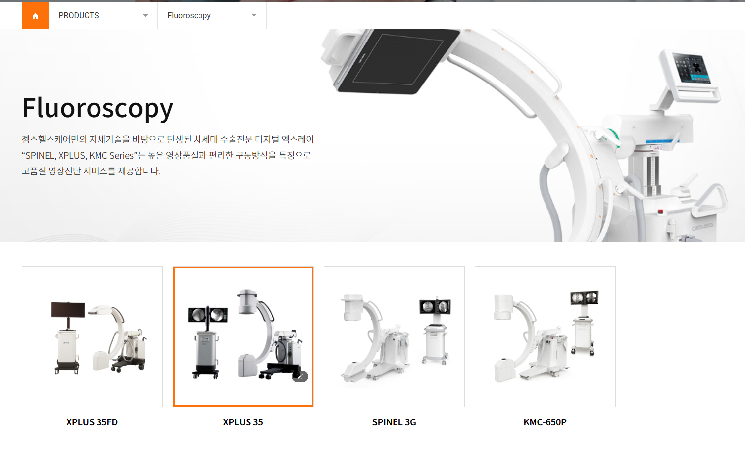 또한 Class II에서 레퍼런스로 삼을 만한 "실질적으로 동등(SE)"한 제품이 이미 나와있는 경우는, 510(k) 신고만 하면 된다. 예를 들어, 이번 KIMES에 오는 GEMSS Healthcare라는 국내회사의 예시를 보자. GEMSS는 Fluoroscopy (수술하면서 촬영하는 엑스레이) 기기인 XPLUS 제품군을 판매하며, 이는 Class II에 해당하는 의료기기다.