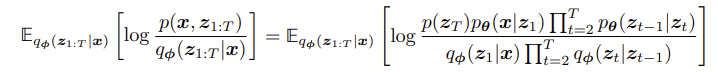 HVAE는 VAE의 latent z를 T개 쌓아서 계층화한 구조이다. 이때 joint distribution은 x, z1, ..., zT에 대해 나타내어지며, ELBO 식은 아래와 같이 전개할 수 있다.