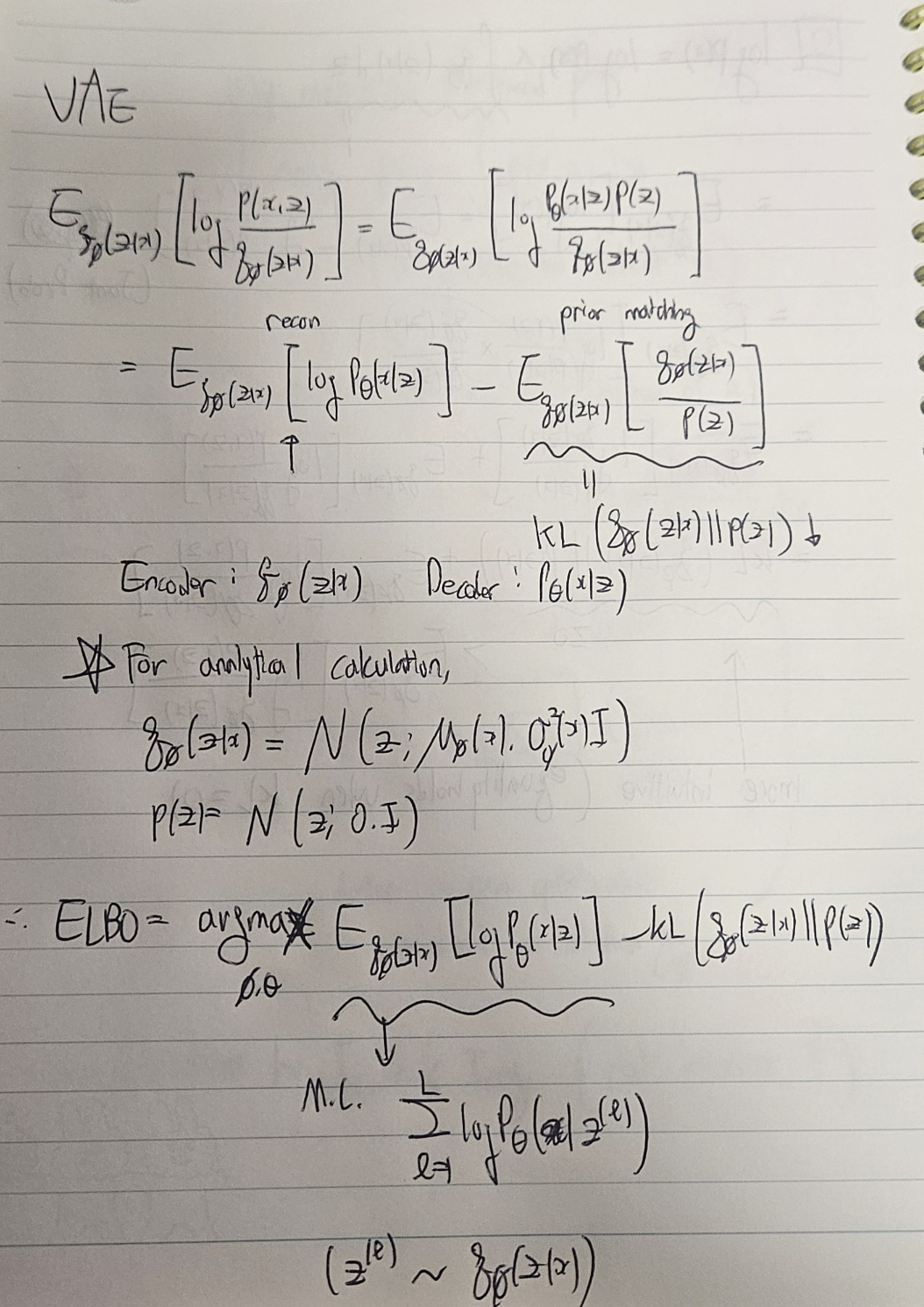 VAE에서 ELBO maximization이 어떻게 이루어지는지 보자. VAE에서 variational posterior는 학습가능한 encoder로 볼 수 있다.