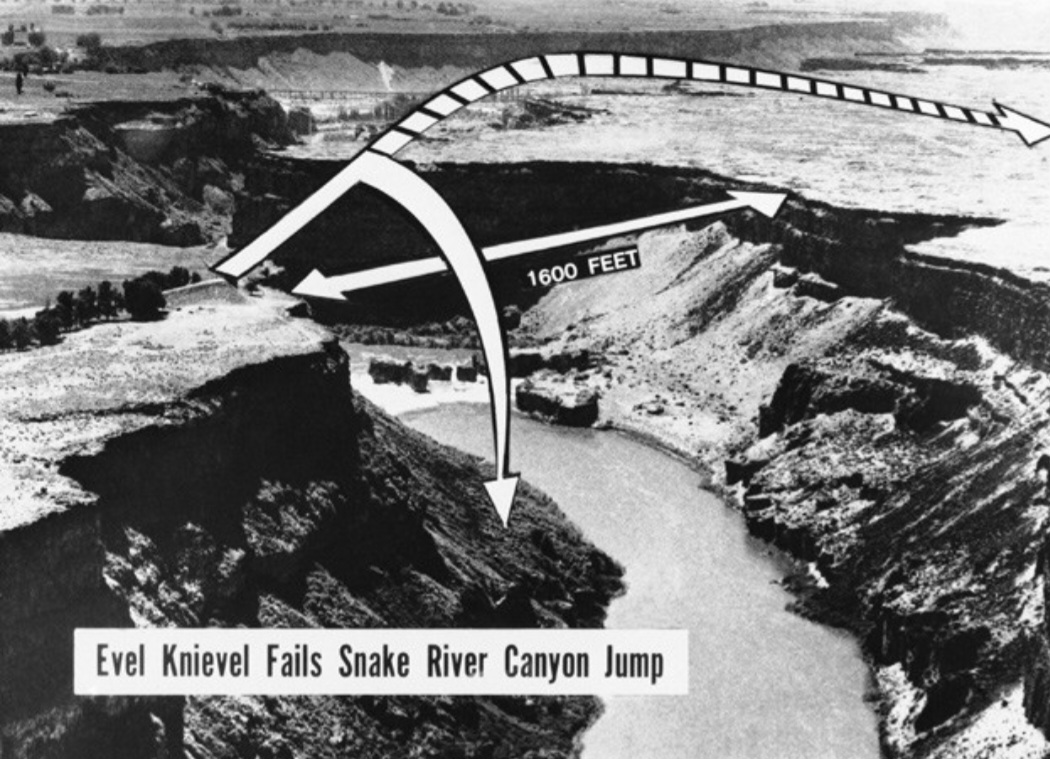 에빌 나이벨은 snake river canyon이라는 협곡을 Skycycle X-2라는 로켓이 달린 오토바이로 뛰어넘는 스턴트를 선보인 적이 있다. 낙하산 오작동으로 묘기가 실패하기는 했지만, 그의 도전 정신을 기려 캐즘을 무시하고 시장에 뛰어드는 전략을 에빌 나이벨 전략이라고 이름지었다.