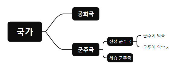 마키아벨리는 모든 나라는 공화국 혹은 군주국이며, 군주국은 신생 군주국과 세습 군주국으로 나뉜다고 보았다. 신생 군주국은 무력, 행운, 혹은 역량으로 얻을 수 있다.