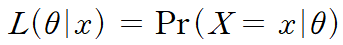 모수는 모집단의 특성 혹은 통계적 수치(모평균, 모표준편차, 모비율 등)를 반영하는 값을 말한다. 확률변수 X의 분포는 모수 theta의 영향을 받아 달라지는데, 이 확률분포를 P_theta(X)로 정의하자. 표집값이란 모집단에서 추출한 값 x를 말한다. 그러면 가능도 함수 L을 아래와 같이 정의할 수 있다.