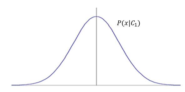 위는 스팸 메일(C1)일 때의 x점수의 분포이다. 마찬가지로, 스팸 메일이 아닐 때 x점수의 분포를 나타낼 수 있다.