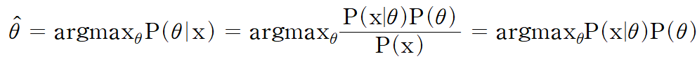 이제, MAP에 의해 사후확률 P(theta | x) 를 최대로 만들 수 있는 파라미터를 설정하자. Bayesian Decision Theorem에 의해 아래와 같이 식을 세울 수 있다.