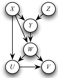 *Directed probabilistic model: direct graphical model이라고도 한다. 이는 아래 그림처럼 노드를 연결하는 edge(화살표)의 방향성이 한쪽으로만 움직이는 그래프를 말한다. 화살표의 방향은 보통 인과 관계를 나타내는데, 이러한 형태로 복잡한 확률 분포를 간단한 확률 분포의 조합으로 나타낼 수 있다.