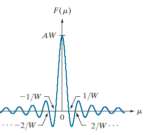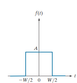 이는 -W/2부터 W/2까지 일정한 크기 A로 발생하는 신호이다. 이를 푸리에 변환하여 주파수 영역으로 바꾸어 보자.