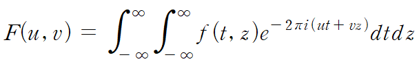 시간 영역에서는 데이터가 시간과 신호의 크기 간의 관계를 나타냈다면, 공간 영역에서는 데이터가 좌표과 신호의 크기 간의 관계를 나타낸다. 그렇기 때문에, 공간 영역에서도 시간 영역과 마찬가지로 푸리에 변환을 아래와 같이 진행할 수 있다. 단, 이 때는 공간 영역의 좌표 (t, z)에 대해여 2차원 푸리에 변환이 이루어진다.