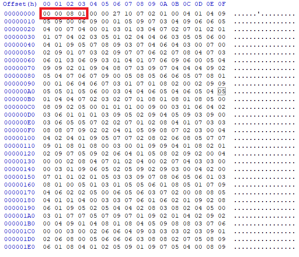 위는 MNIST t10k labels를 hex viewer로 열어본 결과이다. 가장 앞의 네 자리가 파일 시그니처이며, 16진법이므로 숫자 두개당 1바이트씩에 해당한다.