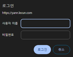 MNIST 데이터셋은 Yann LeCun 홈페이지(yann.lecun.com)에서 다운로드 받을 수 있다. 일반적인 인터넷 브라우저에서는 이 도메인에 대한 암호가 걸려 있어 접근하기 어렵다.