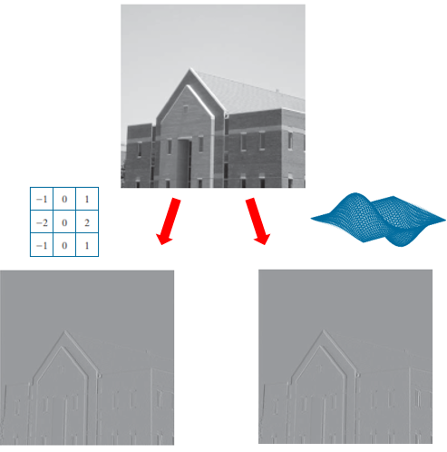 어떤 필터가 이미지에 같은 효과를 준다면, 공간 영역과 주파수 영역 중 어느 곳에서 필터를 씌우는 것이 더 좋을까? 공간 영역에서 필터를 씌우는 연산은 convolution이다. 즉, 3x3 혹은 5x5 등 특정 크기의 필터가 고정된 이미지를 휩쓸고 지나가며 픽셀의 값과 필터의 값을 곱한 것을 더하는 것이다. 반면, 주파수 영역에서 필터를 씌우는 연산은 단순한 elementwise multiplication 이다.