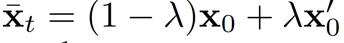 Interpolation은 두 이미지의 latent vector x0과 x0'를 아래와 같은 식으로 latent space에서 섞어 만든다.