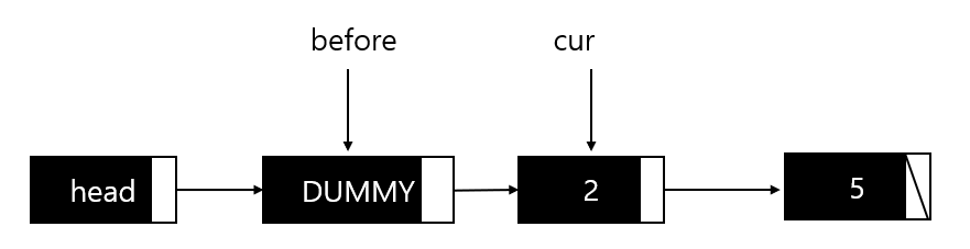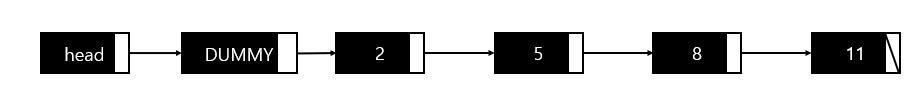 노드를 추가, 삭제, 조회할 때, 2 노드는 나머지와의 차이가 있는데, 데이터가 들어있는 노드가 아닌 head가 가리키고 있다는 점이다. 이는 여러 가지 불편함을 가져오므로, 아래와 같이 더미 노드(Dummy Node)를 추가하여 구현한다.