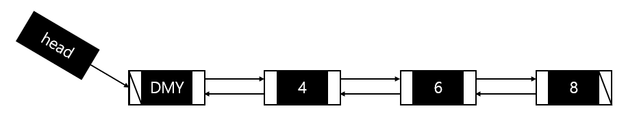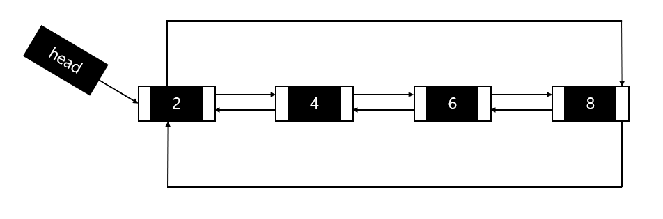 이때 처음(더미 노드 혹은 첫번째 노드)과 마지막 노드는 다른 노드와 달리 연결이 한쪽 방향으로만 이루어지는데, 이것이 불편하다면 원형 연결 리스트처럼 처음과 마지막도 연결해 버릴 수도 있다.