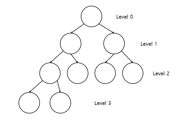 트리의 root node를 level 0으로 생각하고, 자식 노드 하나씩 내려갈수록 level이 하나씩 늘어나는 것으로 생각할 수 있다. 또한, 가장 높은 level을 트리의 높이로 정의할 수 있다.