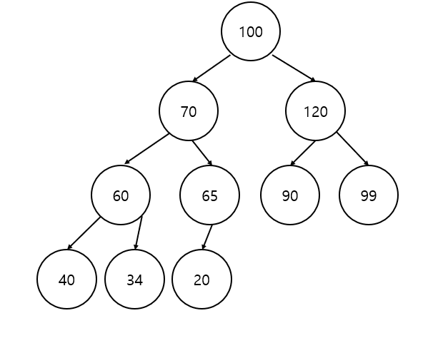 아래와 같은 힙에서 루트 노드 "100"을 삭제한다고 해 보자.