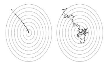 BGD로 loss를 계산할 경우, 하나의 step당 계산량이 매우 크다. 또한, 일방향으로 나아가기 때문에 local minimum에 빠질 위험이 더 크다. 반면, SGD로 loss를 계산하면, 더 많은 step을 거쳐야 하지만 step 당 필요한 계산량이 매우 작고, local minimum에 빠질 위험이 더 적다.