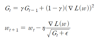 RMSprop은 이름 그대로 RMS(Root Mean Square)를 이용한다. AdaDelta와 마찬가지로 최근 gradient에 더 큰 가중치를 두며, 이를 위해 EMA(Exponential Moving Average, 지수이동평균)을 사용한다. RMSprop은 non-convex optimization에서 특히 좋은 성능을 보인다.