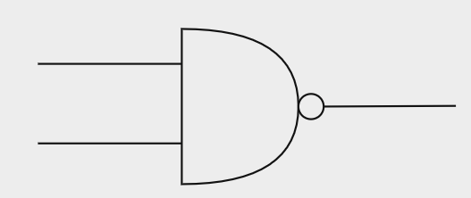 드모르간의 법칙에 따르면 (ab)' = a' + b'이므로, 아래와 같은 형태로 NAND 게이트이다.