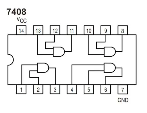 예를 들어 7408을 보면, 아래와 같이 설계된다. 아무것도 연결되지 않은 7번과 14번 핀은 전원 공급용으로 쓴다.