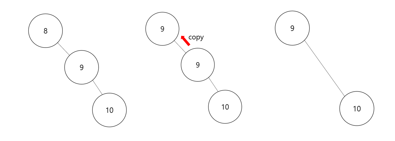 - 대체할 노드의 값을 삭제할 노드에 대입한다.