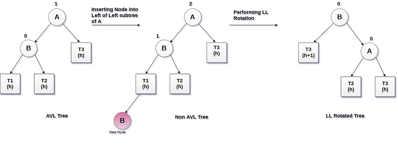 - LL 상태: 자식 노드 두 개가 왼쪽으로 연속하여 연결된 경우 - LL 회전으로 rebalancing