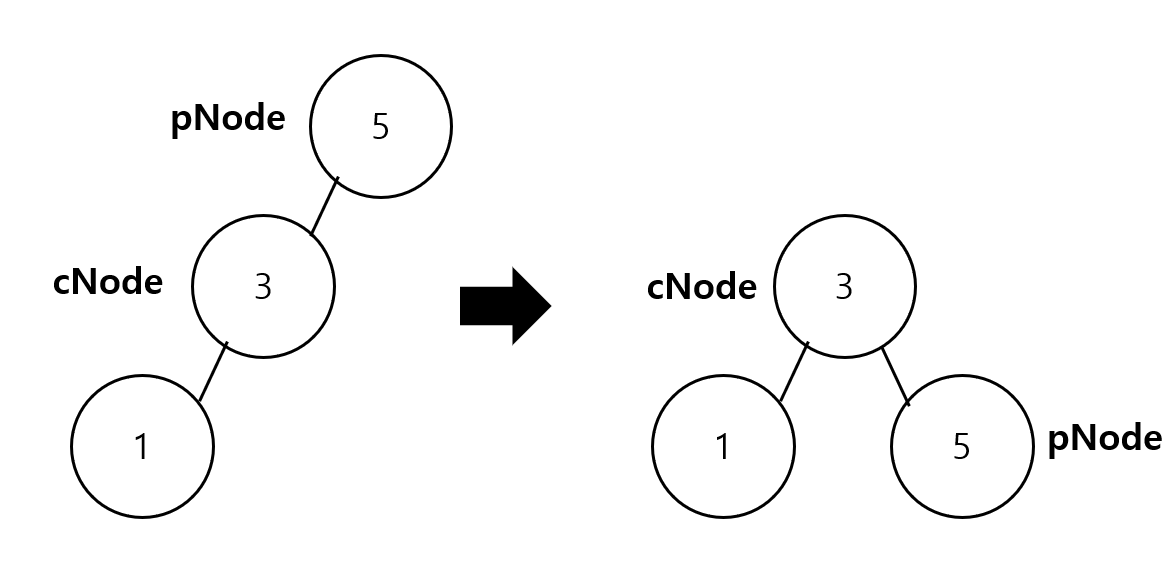 이때 cNode에 원래 있던 오른쪽 서브트리는 pNode의 왼쪽 서브트리로 들어간다. 아래는 조금 더 일반화된 예시이다.