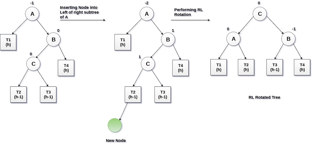 - RL 상태: 자식 노드가 오른쪽->왼쪽으로 연속하여 연결된 경우 - RL 회전으로 rebalancing