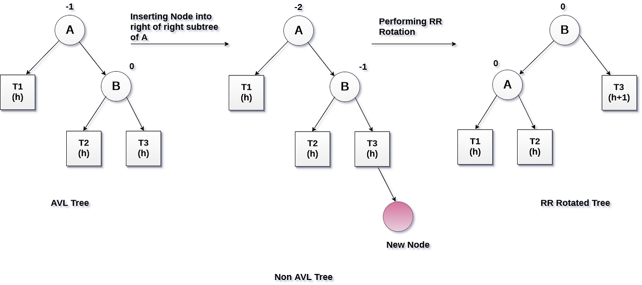 - RR 상태: 자식 노드 두 개가 오른쪽으로 연속하여 연결된 경우 - RR 회전으로 rebalancing